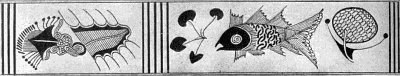 Aztec pottery is often known for its geometric shapes. Often these were intricately drawn, with repeating patterns. But as time went on, artisans began to use more naturalistic patterns - figures of animals were used, such as the marine figures on this bowl: